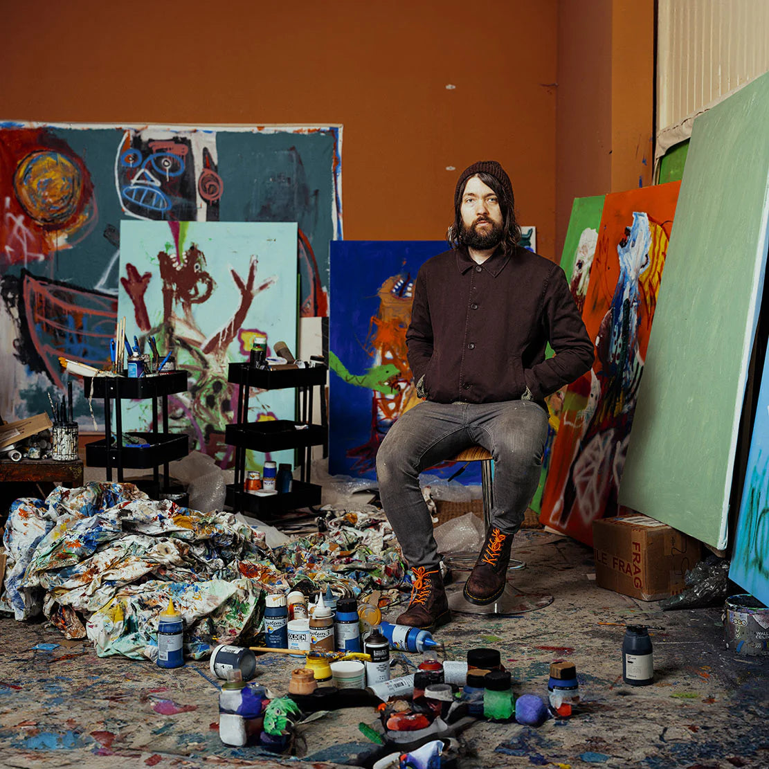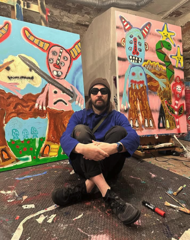 Niall Campbell Strachan is a Scottish visual artist who paints imagined beings using intuitive brush strokes, bringing playful creatures from his subconscious to life for the audience to interpret.