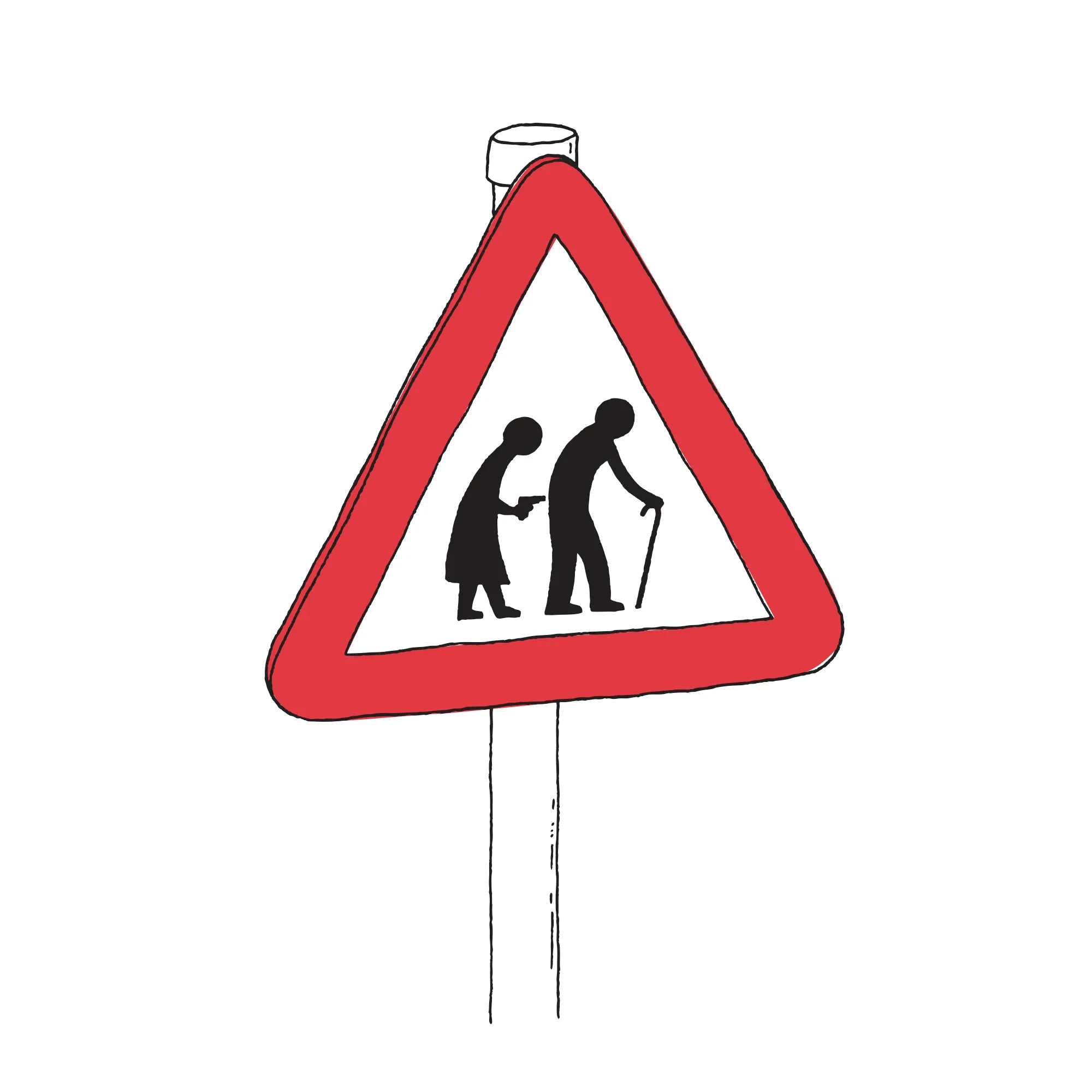 Ilustración lúdica y reflexiva que combina línea, color y comentario cultural.